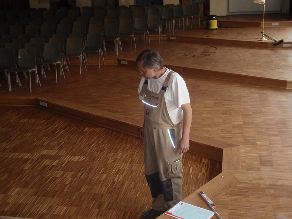 Rechtzeitig zu Schulbeginn konnte das neue Forum der Freien Waldorfschule Kiel in Betrieb genommen werden. Der vor Jahrzehnten verlegte Holzpflasterbelag wurde samt Estrich komplett entfernt und durch eine neue Unterkomstruktion ersetzt.